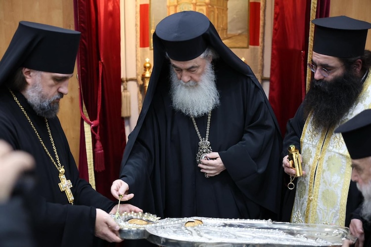 Патриарх Иерусалимский Феофил освятил плащаницу для российского монастыря